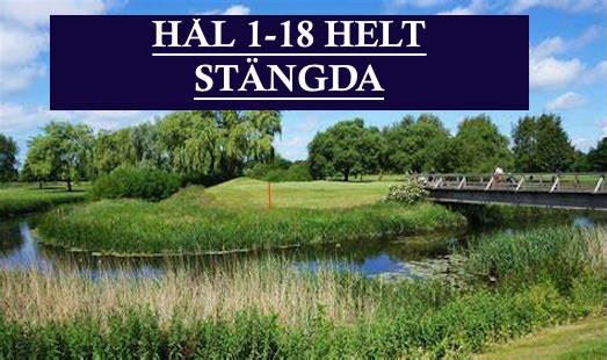 Hål 1-18 helt stängda. Hål 19-27 öppna, provisoriska greener Slagmatta, obligatorisk för alla,. Slagmattor finns att låna vid golfterminalen i klubbhuset. Bollautomaten fungerar igen - Välkomna