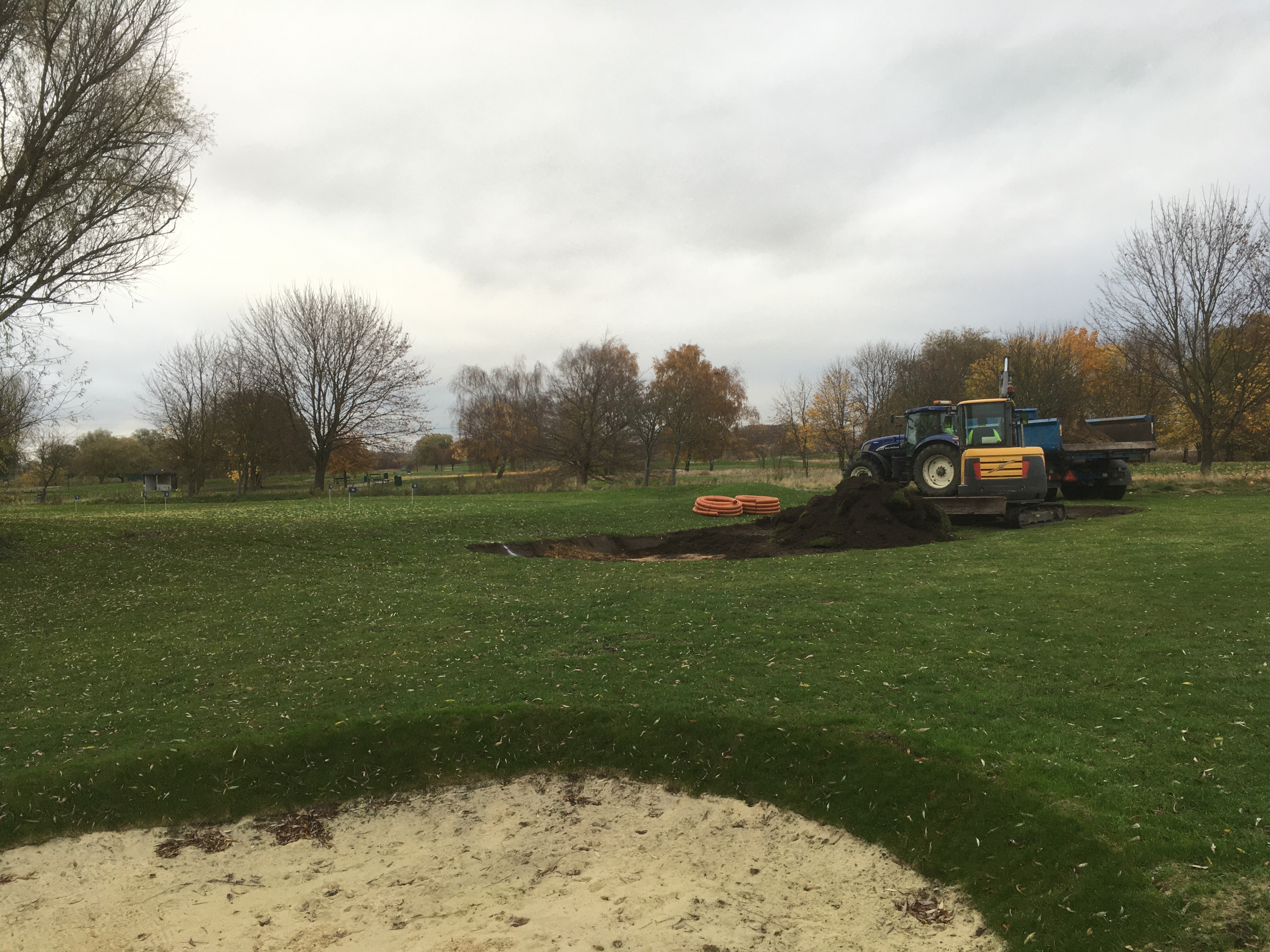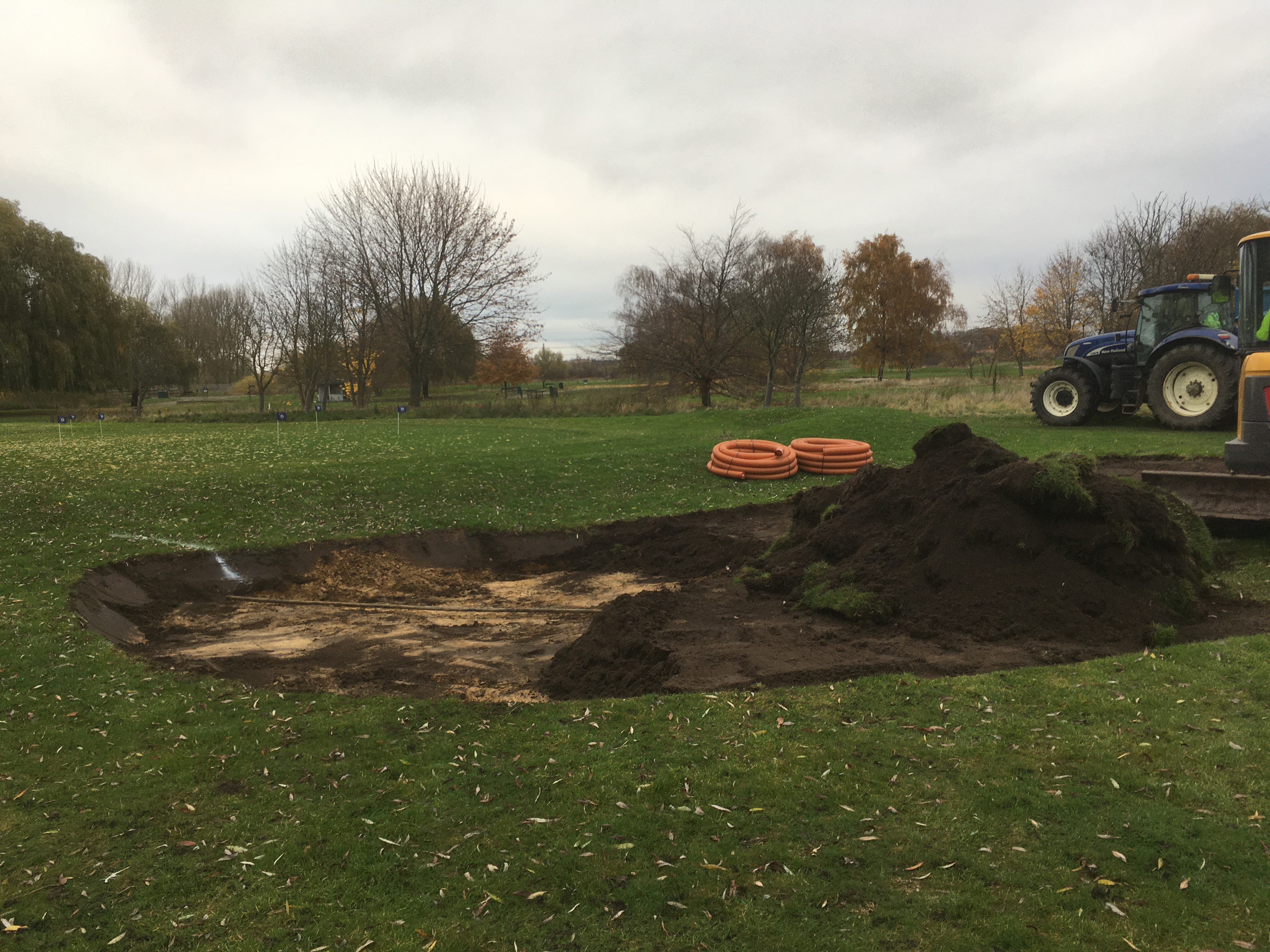 Förutom bunkern så läggs, som tidigare meddelats, bevattning på hela korthålsbanan. Samtliga greener har även klippts ut och omformats så träning och spel blir bättre och roligare.