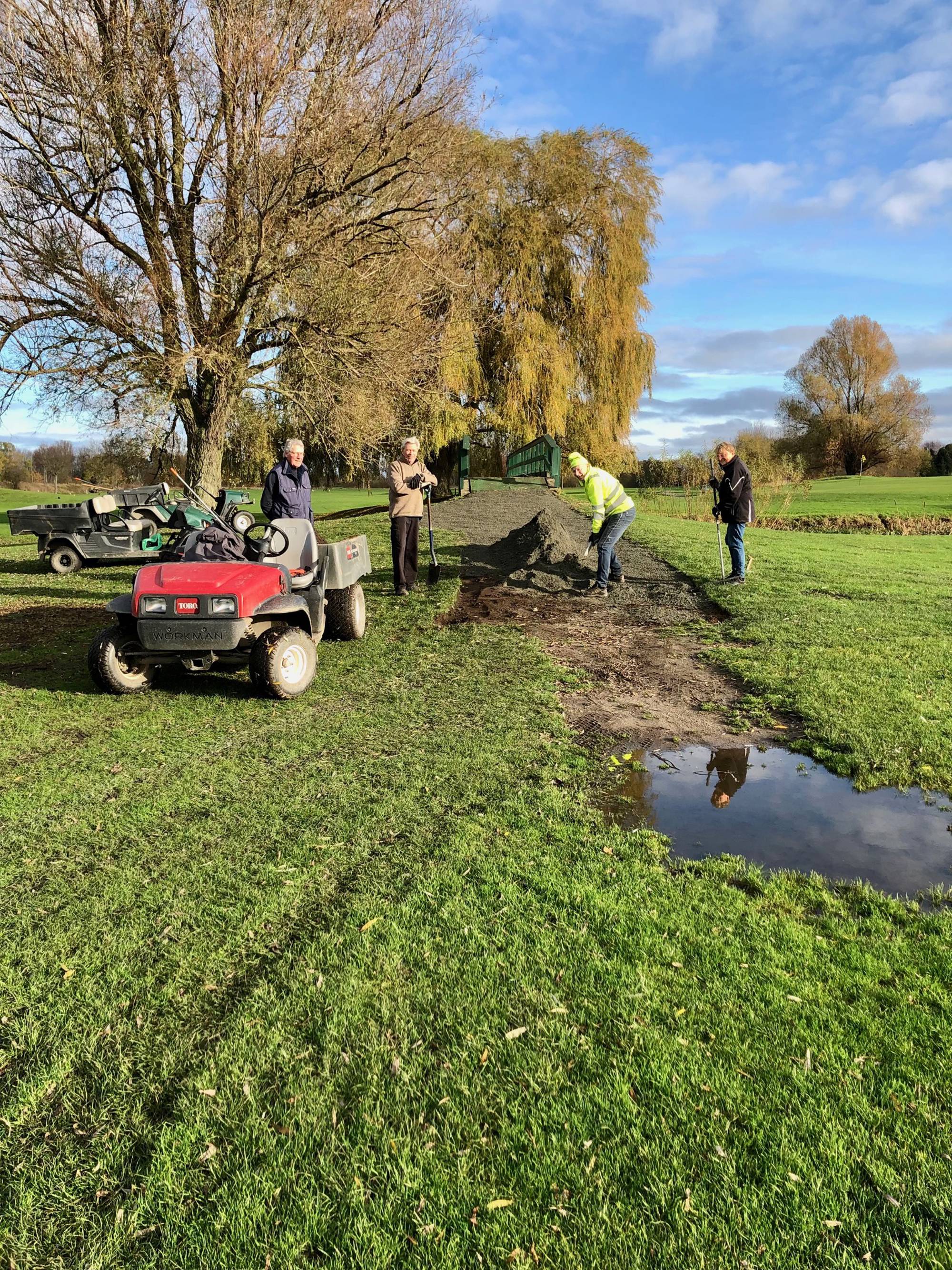 Gången från tee på hål 13 upp mot bron över Sege å har nu åtgärdats. Onsdagsgänget har återigen gjort en fantastisk insats.