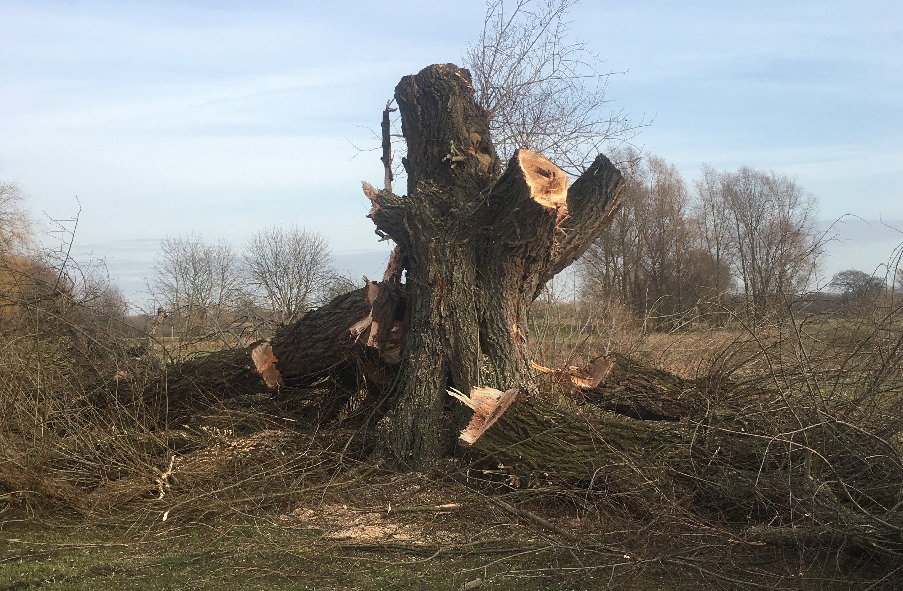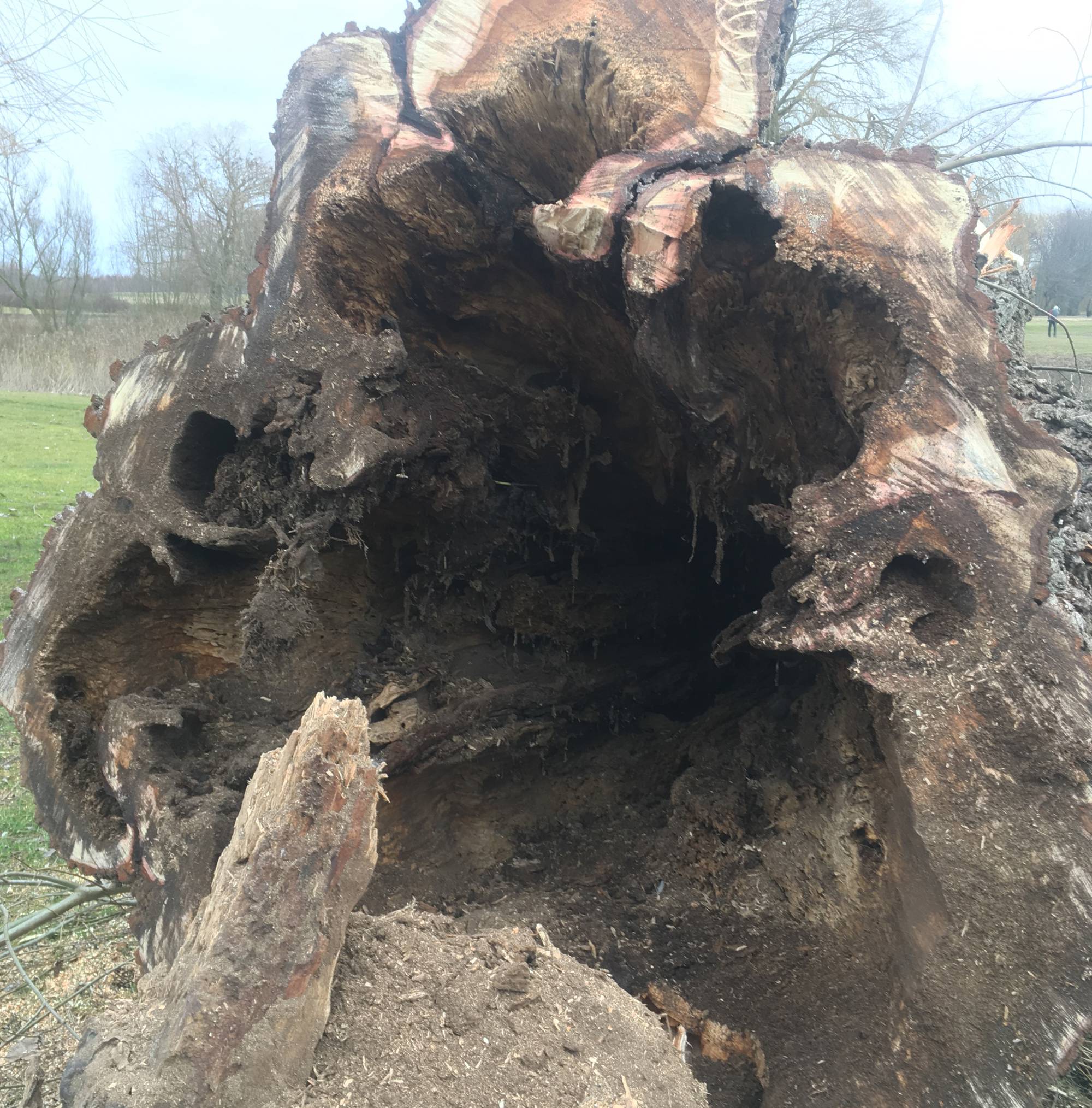 Pilen har röta i stammar och grenar. Våra trädexperter förordade att vi med tanke på säkerheten runt pilen fäller den. Alla träd har sin livslängd.